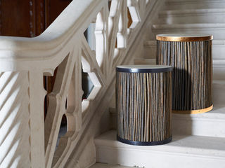 Creation of a pair of bedside tables in patinated cork, lacquered wood, and rose‑gold‑gilded brass – ELLIOTT BARNES INTERIORS, 2021